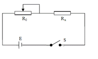 圖示電路為限流式電路,電源電動勢為E,內(nèi)阻不計,滑動變阻器阻值為R0,被測電阻的阻值為Rx。閉合開關(guān)后,Rx兩端電壓為