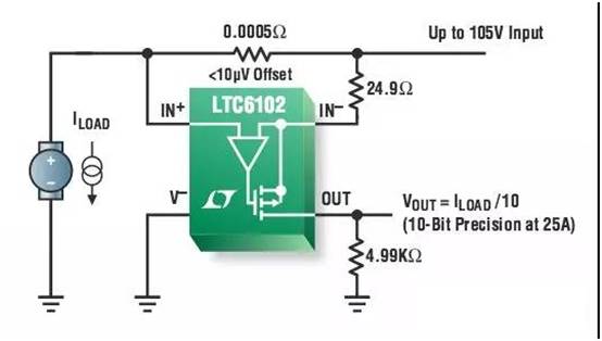本文用一個具體的例子比較在電壓軌上完成電流檢測的幾種不同方法。DY種方法是使用帶分立電阻器的單運放差分放大器;第二種方法是用V 而不是地作為參考軌;第三種方法在IC解決方案中很常見,在這種方案中,晶體管和運算放大器一起工作,以接地參考電流測量。