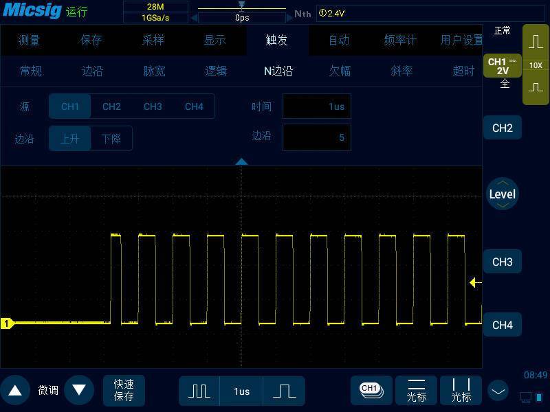觸發(fā)功能用于同步信號的水平掃描,這對于方便我們觀察信號至關重要。 觸發(fā)器通過重復顯示輸入信號的觸發(fā)部分,使重復出現的波形在顯示器上看起來靜止不動。 示波器里最基本和常見的觸發(fā)方式就是邊沿觸發(fā)。 這是大多數人首次開始使用示波器時最有可能使用的觸發(fā)方式。 除此以外,示波器還有許多其他特殊的甚至復雜的觸發(fā)方式用于響應特定的條件,并且真正可以使示波器成為功能強大的測量工具。 這些觸發(fā)包括脈寬觸發(fā)、邏輯觸發(fā),N邊沿觸發(fā)、欠幅觸發(fā)、斜率觸發(fā)、超時觸發(fā)、視頻觸發(fā)、串行總線觸發(fā)等。