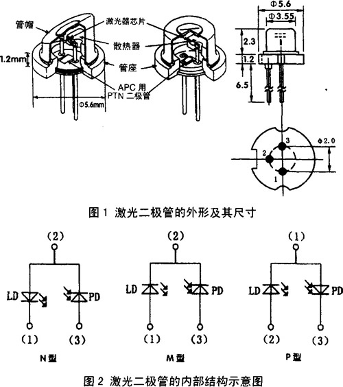 激光二極管的外形及尺寸如圖1所示。其內(nèi)部結(jié)構(gòu)類(lèi)型有三種,如圖2所示。