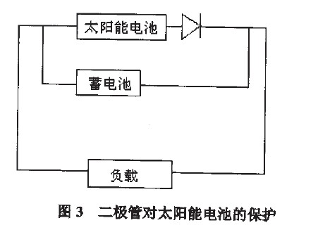 前面所說的太陽能電池不能直接對(duì)負(fù)載供電,必須把電能存儲(chǔ)在蓄電池中,蓄電池對(duì)負(fù)載供電,但是蓄電池的電壓不能加在太陽能電池上,必須保證太陽能電池和蓄電池之間的充電是單向的。很簡(jiǎn)單的方法是在太陽能電池和蓄電池之間加一個(gè)二極管,如圖3所示。