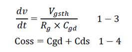1-3中,Rg和Cgd越大,dv/dt越低。1-4中,Coss越低,dv/dt越高。在MOSFET選型中,MOSFET的Coss、Ciss、Crss參數(shù)特性,影響開(kāi)關(guān)尖峰大小。
