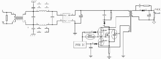由1-1和1-2式可知,寄生電感和di/dt形成電壓尖峰,寄生電容和dv/dt形成電流尖峰。這些快速變化的電流和關(guān)聯(lián)的諧波在其他地方產(chǎn)生耦合的噪聲電壓,因此影響到開(kāi)關(guān)電源EMI特性。下面以反激式開(kāi)關(guān)拓?fù)錇槔瑢?duì)降低MOSFET的dv/dt和di/dt措施進(jìn)行介紹。