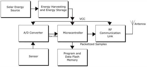 盡管能量采集應(yīng)用可能會(huì)忽略顯示器等很多面向用戶的模塊,但帶有無(wú)線鏈路的太陽(yáng)能裝置仍需要大量的附加功能,如圖1所示。從大的方面來(lái)看,電力子系統(tǒng)可能只是一個(gè)很小的設(shè)計(jì),但實(shí)際上并非如此。它擁有以下功能和模塊:與太陽(yáng)能電池連接并從中捕獲能量的前端;將能量引導(dǎo)至存儲(chǔ)單元(電池或超級(jí)電容器)的電源管理功能,以及控制從存儲(chǔ)單元提取能量的電力負(fù)荷管理模塊。系統(tǒng)先捕獲可用的能量(焦耳),然后以功率(瓦特)的形式將其釋放出來(lái),以滿足負(fù)載需求。[功率是運(yùn)行負(fù)載所需的能量利用率;但以能量(即功率對(duì)時(shí)間的積分)的形式被捕獲。]