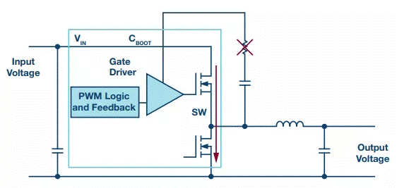 圖1:對開關(guān)模式電源進行開關(guān)轉(zhuǎn)換,在開關(guān)節(jié)點處施加輸入電壓