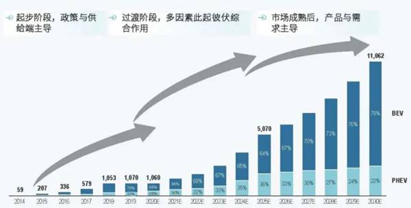 圖1:中國新能源乘用車銷量預(yù)測(單位:千臺),圖中BEV表示純電動、PHEV為插電混動(圖源:羅蘭貝格)