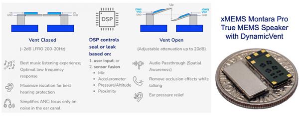 xMEMS Labs(美商知微電子)今日宣布推出集成DynamicVent的單芯片MEMS揚(yáng)聲器Montara Pro,結(jié)合開放式和封閉式的耳塞式耳機(jī)的優(yōu)點(diǎn),使智能TWS(真無線藍(lán)牙)耳塞式耳機(jī)和助聽器能創(chuàng)造出兩全其美的用戶體驗(yàn)。在本周于拉斯維加斯舉辦的CES消費(fèi)電子展上,xMEMS在Venetian Suite 29-325首次展示Montara Pro。