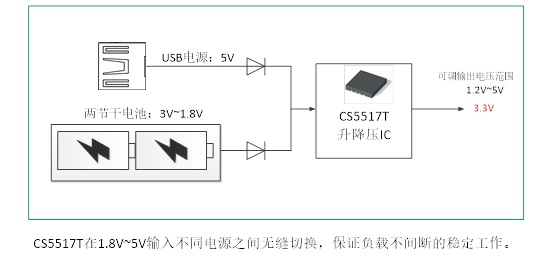 深圳市永阜康科技有限公司針對單節(jié)鋰電池、磷酸鐵鋰電池及2-3節(jié)干電池供電的移動設(shè)備應(yīng)用需求,現(xiàn)在大力推廣一顆具備8uA超低靜態(tài)電流、600mA輸出的DC-DC升降壓IC-CS5517T,專用于便攜式電子產(chǎn)品。該器件支持1.8V至5.0V電池供電,可調(diào)輸出電壓范圍1.2V至5.0V,最大輸出電流可達500mA;因為隨著電池的放電,電壓是會下降的,使用該芯片,就能夠提高電池的效率,盡可能的榨干電池電量,可延長紐扣電池、鋰電池和多串聯(lián)堿性電池組供電的智能物聯(lián)網(wǎng)設(shè)備電池使用壽命。