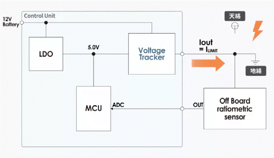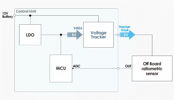 如想安全地為安裝在遠(yuǎn)離 ECU(電子控制單元)的分離式傳感器供電并準(zhǔn)確讀取信號(hào)時(shí),電壓跟蹤器是最好的選擇,原因在于其卓越的電壓跟蹤精度。這一點(diǎn)將會(huì)在「3. 電壓跟蹤器特性」進(jìn)一步講解。