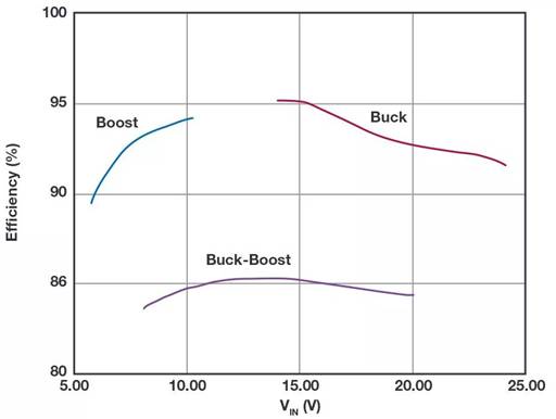 圖5. LTM8042的升壓、降壓和降壓-升壓配置效率