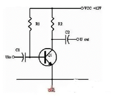 同理,當(dāng)輸入信號(hào)減小時(shí),則Ib減小,Ic電流減小,則電阻R2的電壓U2=Ic×R2會(huì)隨之減小,Uce=VCC-U2,會(huì)變大。在輸入信減小時(shí),Uce最大變化是從1/2的VCC變化到VCC。這樣,在輸入信號(hào)一定范圍內(nèi)發(fā)生正負(fù)變化時(shí),Uce以1/2VCC為準(zhǔn)的話(huà)就有一個(gè)對(duì)稱(chēng)的正負(fù)變化范圍,所以一般圖1靜態(tài)工作點(diǎn)的設(shè)置為Uce接近于電源電壓的一半。
