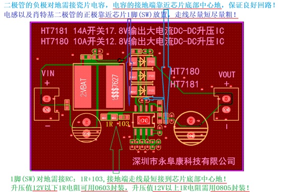 HT7180/HT7181 ESOP-8內(nèi)置MOS大電流升壓芯片layout參考以及注意事項