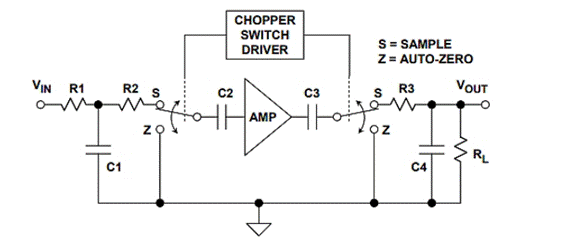 根據(jù)凌力爾特公司(Linear Technology)的吉姆·威廉姆斯(Jim Williams)所說,斬波穩(wěn)定的方法是由EA戈德堡(EA Goldberg)在1948年開發(fā)的,它使用放大器的輸入來對交流載波進(jìn)行幅度調(diào)制。該載波被放大并同步解調(diào)回DC,并提供放大器的輸出。由于直流輸入被轉(zhuǎn)換為交流信號(hào)并放大為交流信號(hào),因此放大器的直流項(xiàng)不會(huì)影響整體漂移。因此,斬波穩(wěn)定型放大器與傳統(tǒng)差分類型相比,可實(shí)現(xiàn)更低的時(shí)間和溫度漂移。
