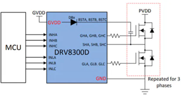 圖16:DRV8300NIPWR簡化原理圖 (圖源:TI)