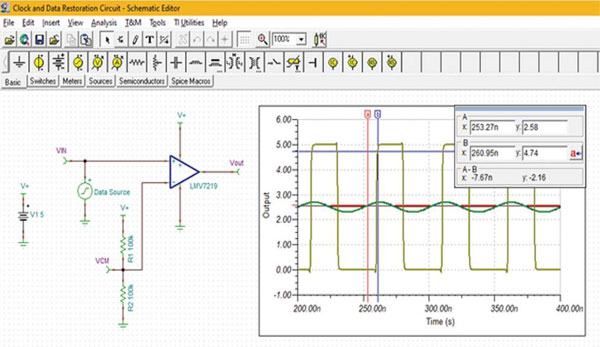 通過背板和電纜傳輸?shù)臅r(shí)鐘信號(hào)會(huì)因帶寬限制、碼間干擾 (ISI)、噪聲、反射和串?dāng)_導(dǎo)致性能下降。比較器可用于恢復(fù)時(shí)鐘信號(hào)并將其恢復(fù)為更清晰定義的形式(圖 7)。