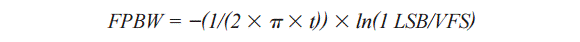這樣,設(shè)計(jì)人員便能估算用于轉(zhuǎn)換器的最大模擬輸入頻率或采樣帶寬,并依舊建立至1 LSB誤差以內(nèi)。超出這個(gè)范圍,則ADC無法精確表示信號(hào)。這可以簡(jiǎn)單定義為: