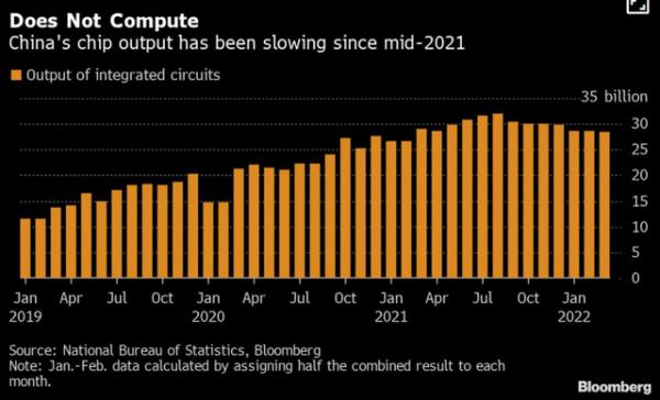 對于中國國內(nèi)一季度集成電路出現(xiàn)同比下滑的原因,彭博社認為,主要是由于消費電子產(chǎn)品需求疲軟以及包括上海在內(nèi)的部分地區(qū)因新冠疫情引發(fā)的封鎖,導(dǎo)致一些大型集成電路制造商難以獲得零組件,從而影響了產(chǎn)量。