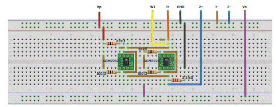 圖6.具有過零失真消除功能的推挽輸出級面包板電路