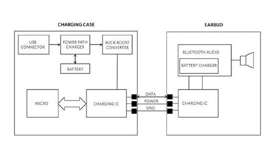 傳統(tǒng)的TWS充電過程中,需要使用3個或更多的引腳,其中兩個引腳用于充電,其他引腳用來在充電盒和耳機(jī)之間建立通信(或數(shù)據(jù))通道,一方面跟蹤耳機(jī)電池的充電狀態(tài)以便對充電過程進(jìn)行調(diào)控,另一方面實現(xiàn)設(shè)備固件升級和/或用于工廠調(diào)試,在一些方案中還使用專用的(pogo)引腳檢測耳機(jī)是否被放入充電盒。但更多的引腳,也就意味著電路布線的復(fù)雜性會增加,而且會在可靠性上引入額外的風(fēng)險。