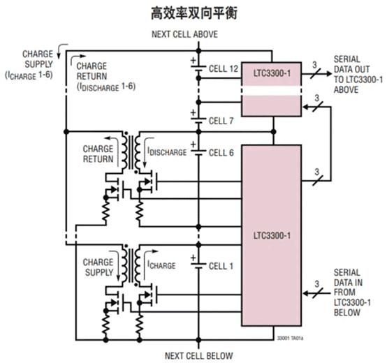 圖4:LTC3300-1應(yīng)用于BMS的原理圖(圖源:ADI)
