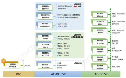 緊接著又推出65W合封氮化鎵功率芯片SC3057,功率密度再創(chuàng)新高。