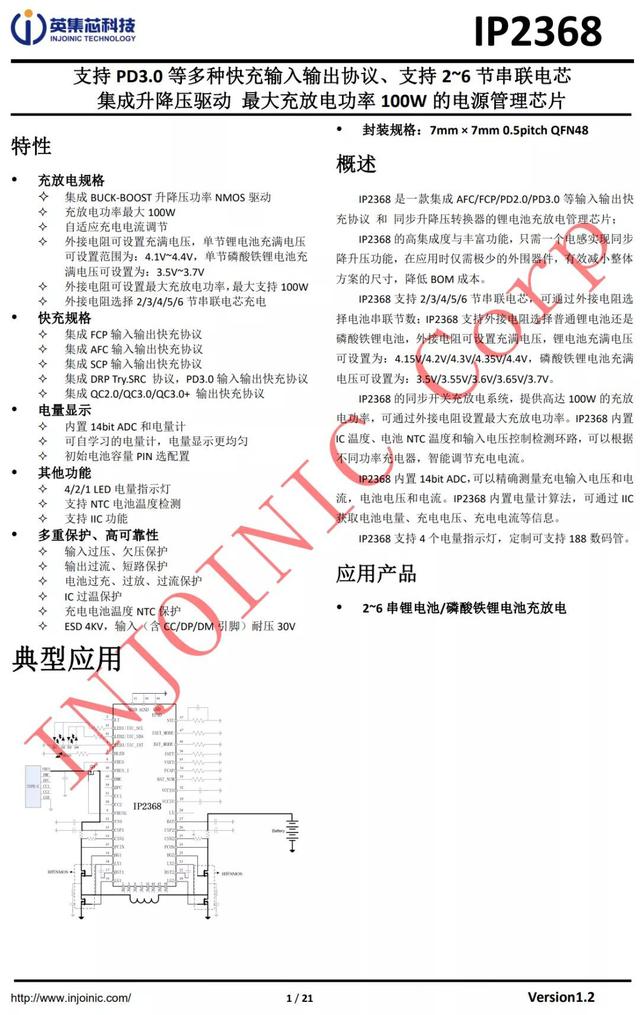 深耕移動(dòng)電源,快充協(xié)議的英集芯科技,推出了一款升降壓架構(gòu),支持2到6串鋰電池、磷酸鐵鋰電池充電的電源管理芯片IP2368。使用這款芯片,可以為電動(dòng)工具的多串電池組提供時(shí)下熱門的PD快充功能,直接使用非常普及的USB PD充電器為電池充電,無(wú)需專用充電器。