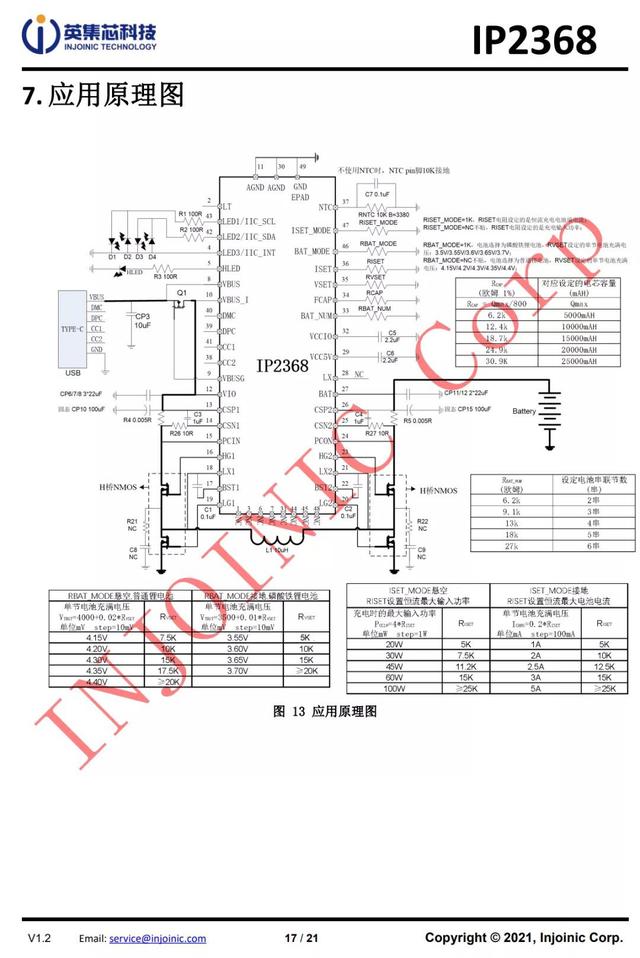 IP2368支持使用2-6節(jié)串聯(lián)的電池組,電池充滿電壓支持電阻設(shè)置,適配磷酸鐵鋰和三元鋰電池,電池充滿電壓可通過電阻配置,充分滿足不同設(shè)備的電池種類。IP2368默認(rèn)支持四燈電量指示,電池組初始容量可通過電阻配置,可實(shí)現(xiàn)精準(zhǔn)的電量顯示。