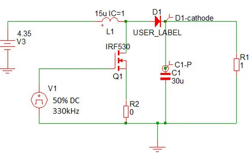 在圖 3中,升壓轉(zhuǎn)換器電源系統(tǒng)由經(jīng)典的 MOSFET-二極管-電感器組合表示。MOSFET 以 50% 的占空比進行開關,輸入電壓源 V3 設置為產(chǎn)生 6V 的輸出電壓。輸出電壓、電感器和電容器值與上述降壓轉(zhuǎn)換器的情況相同。在這兩種情況下,相同的 LC 無源器件將 6V 提供給 1Ω。