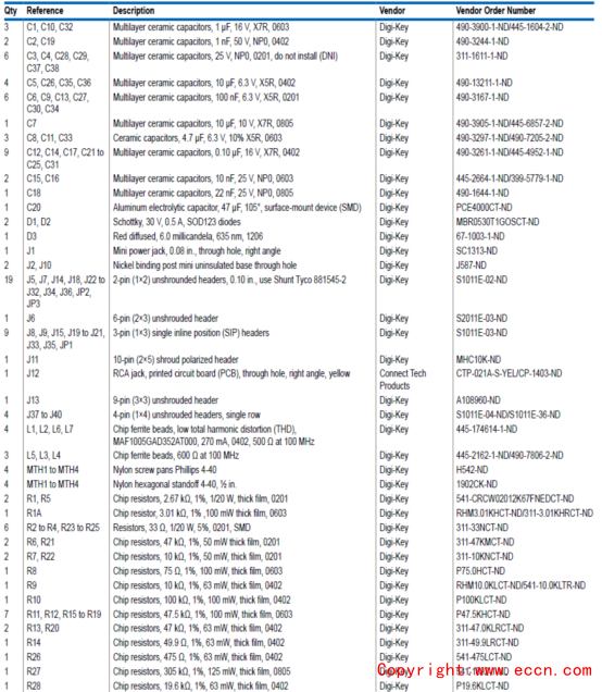 ADI公司的SSM6515是高度集成高效率超低功耗單聲道D類音頻放大器,具有很適合用于無線耳機的數(shù)字輸入.應用電路僅需要很少的外接元件,工作電壓從1.8 V (PVDD)低電源和1.2V到1.8V(IOVDD)電源.這些和1.8V信令能共享.器件能向16 Ω負載提供<1%總諧波失真+噪音(THD+N)的連續(xù)輸出功率85mW.器件具有2.57 μV rms噪音, 113 dB A加權信噪比和動態(tài)范圍, 30 mW, 1 kHz輸出32 Ω 負載的THD+N為0.003%,I2C控制有多達4引腳可選擇地址或單調(diào)的操作.有多種串行數(shù)據(jù)格式,TDM,I2S或左對齊從,PDM輸入從2.8224 MHz 到12.288 MHz. 支持取樣速率從8 kHz 到 768 kHz,具有靈活數(shù)字增益調(diào)整,具有可編角頻率的DC阻隔高通濾波器,高性能模式的典型空閑功率為1.55mW,低功耗模式以降低功耗,靈活的輸出增益限制器和剪裁技術,具有零數(shù)字輸入的自動降功耗特性,短路保護和雜音抑制器,用戶可選擇的超低EMI發(fā)送模式,加電復位(POR), 1.8 V PVDD電源,1.2 V 到1.8 V IOVDD電源,采用11凸0.984 mm × 1.444 mm, 0.35 mm間距WLCSP封裝.主要用在無線耳機,有源噪音抑制耳機,智能手機耳機揚聲器,助聽器和手持電子設備.本文介紹了SSM6515主要特性,功能框圖,典型應用電路圖以及評估板EVALSSM6515Z主要特性,電路圖,材料清單和PCB設計圖.