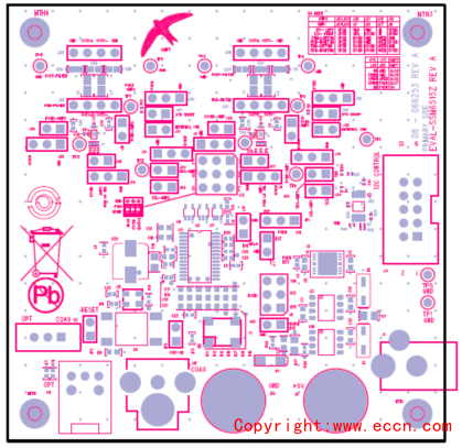 圖8. 評估板EVALSSM6515Z PCB設計圖:頂層裝配
