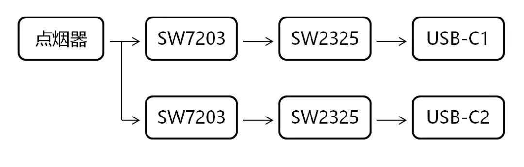 智融雙口100W車充方案同樣可以使用智融SW7203+SW2325/SW2305設(shè)計(jì),可實(shí)現(xiàn)單口最高輸出功率100W,同時(shí)支持雙口功率盲插,并且支持輸出功率智能分配功能。SW2325/SW2305支持所有通用快充協(xié)議及大部分私有協(xié)議,并且支持USB-C口升級(jí)協(xié)議功能。