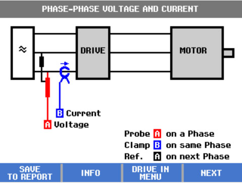 要使用 Fluke Motor Drive Analyzer 開始每個(gè)測(cè)試,只需根據(jù)圖表連接測(cè)試探針,然后按“下一步”。