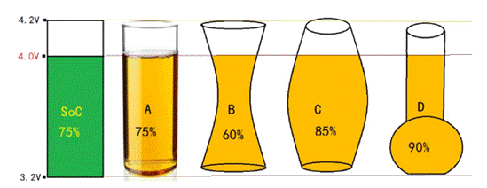 如上圖所示,假設(shè)A、B、C、D四個(gè)電芯標(biāo)稱容量相同,而且當(dāng)前開路電壓也都相同,但想一想,當(dāng)前電量也相同嗎?電量分布對(duì)電池特性有何影響,有多大的影響?針對(duì)以上這4種特性的電池,哪一種不適合快充、哪一種不適合快放呢?結(jié)合上述提到的知識(shí),應(yīng)該不難得出結(jié)論吧!