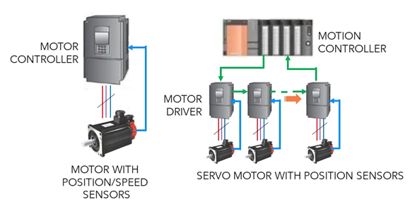 另一方面,電機控制是更側(cè)重于控制電機旋轉(zhuǎn)的系統(tǒng)或技術(shù)。典型的電機控制系統(tǒng)調(diào)整單個電機的扭矩、速度和位置的一個或多個參數(shù),以達(dá)到目標(biāo)值。電機的類型不同,驅(qū)動電機的要求和技術(shù)可能會有很大差異。電機控制器通常沒有規(guī)劃能力(高級驅(qū)動器只有簡單的位置和速度規(guī)劃能力)。因此,解釋電機控制和運動控制區(qū)別的簡單方法是: