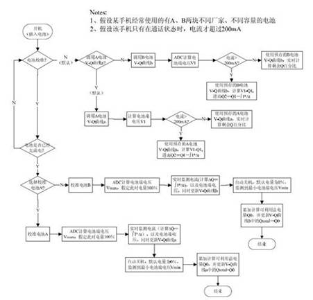 插入電池(開機(jī))→→是否電池校準(zhǔn)(默認(rèn)否)→→否→→調(diào)用電池容量曲線a(默認(rèn))(若使用電池B,則修改為使用電池容量曲線b)→→通過電池端電池Vcc以及監(jiān)測(cè)耗電量聯(lián)合評(píng)估剩余電量百分比。