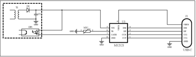 M12121是一款支持 PD3.1 的單口全兼容快充協(xié)議IC,集成了微處理器、USB Type-C 接口、快充協(xié)議控制器,支持DFP/Source 和UFP/Sink功能,并集成了電源路徑MOS和高精度采樣電阻。其CATH 管腳用于連接前級(jí) DC-DC 的反饋節(jié)點(diǎn)或驅(qū)動(dòng)AC-DC的反饋光耦。僅需極少的元件,即可組成高性能的充放電解決方案。