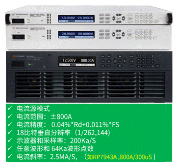 是德科技APS系列先進(jìn)電源系統(tǒng),單機(jī)最大電流達(dá)800A,0.04%的讀數(shù)精度,內(nèi)置任意波形可輸出正弦波、方波、掃頻等各種波形,同時(shí)200Ksa/s、18比特高精度采樣的測量能量,成為越來越多毫歐、微歐精密電阻校準(zhǔn),電流互感器校驗(yàn),超導(dǎo)材料驗(yàn)證,熔斷器、繼電器、線束和端子等大電流、低電阻測試的首選。