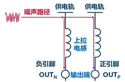 上拉電感是另一條噪聲路徑,噪聲從供電軌流至輸出端。