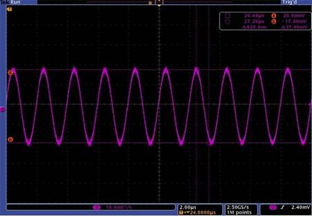電源調(diào)制:1.2V直流電源上疊加一個500kHz峰峰值電壓38 mV信號調(diào)制所得。