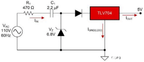 當負載未接通時,基本的電容器壓降解決方案需要穩(wěn)壓二極管吸收應用所需的電流。該穩(wěn)壓二極管是必需項,因此線性穩(wěn)壓器(LDO)的輸入電壓不會超過額定值。
