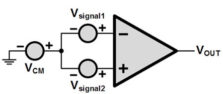 共模抑制比由具有相同直流電壓符號的兩個輸入形成。假設(shè)一個輸入電壓是8v,另一個9v,這里8v是通用的,輸入電壓應(yīng)通過V+ – V- 等式計算,結(jié)果將為9v-8v=1v,但兩個輸入之間的公共直流電壓具有非零增益。