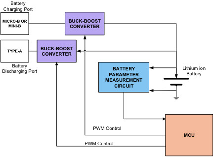 大多數(shù)設(shè)計(jì)中的電池充電端口是 USB Mini-B 或 Micro-B 連接器,然后連接到 USB 壁式電源適配器。電池放電端口通常是 USB Type-A 連接器,用于連接智能手機(jī)或任何其他便攜式設(shè)備。