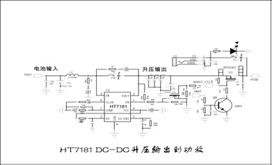 (二)電源升壓采用HT7181,兩串鋰電升壓至15V,效率高達(dá)93%;HT7181具有2.7V至16V寬輸入電壓范圍,可為采用單節(jié)或兩節(jié)鋰電池,或12V鉛酸電池的應(yīng)用提供支持。該器件具備14A開(kāi)關(guān)電流能力,并且能夠提供最高17.8V的輸出電壓;芯片采用ESOP-8封裝,外圍簡(jiǎn)單。