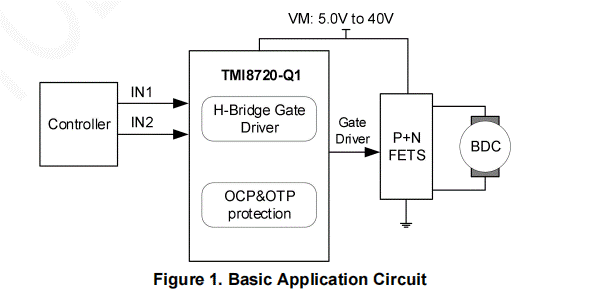 越來(lái)越多的電機(jī)已被應(yīng)用到汽車(chē)上,選擇一個(gè)符合汽車(chē)等級(jí)要求的有刷直流電機(jī)驅(qū)動(dòng),可簡(jiǎn)化設(shè)計(jì)以及提高安全性能。本文為您介紹符合汽車(chē)等級(jí)要求的一款驅(qū)動(dòng) 2 個(gè)外部P溝道MOSFET和2個(gè)N溝道MOSFET的H 橋柵極驅(qū)動(dòng)器TMI8720-Q1芯片。