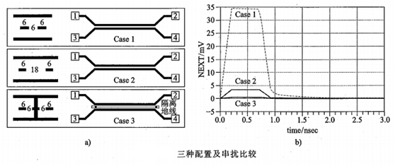 3、對于內(nèi)層走線,保護地線可以減小近端串擾。