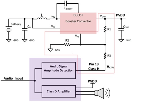 ACM3108/ACM3128/ACM3129功放芯片系列動態(tài)調(diào)整升壓CLASS H功能說明