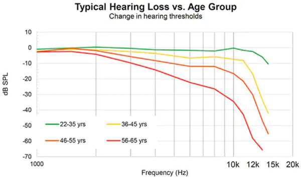 圖 2:隨著用戶年齡的增長,他們逐漸失去了聽高頻率的能力。個性化的聲音提升了選定頻率音量,以補償聽力敏感度的損失。(圖片來源:Knowles)