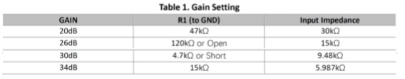 ACM3128A pin5(GAIN)用來(lái)設(shè)置增益,接一個(gè)電阻到地,不同電阻對(duì)應(yīng)不同增益,四個(gè)檔位。