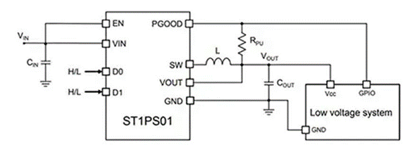在同步降壓轉(zhuǎn)換器中,如STMicroelectronics推出的ST1PS01使用同步MOSFET整流取代了輸出整流器(圖3)。相比異步降壓轉(zhuǎn)換器中的輸出整流器,同步MOSFET的“導(dǎo)通”電阻較低,可降低損耗,從而顯著提高轉(zhuǎn)換效率。同步MOSFET是該IC的內(nèi)部組成部分,不需要外部整流二極管。