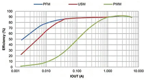 圖5:AP62600為設(shè)計(jì)者提供了三種工作模式選擇,以滿足個性化應(yīng)用的需求:PFM、USM和PWM。(圖片來源:Diodes, Inc.)